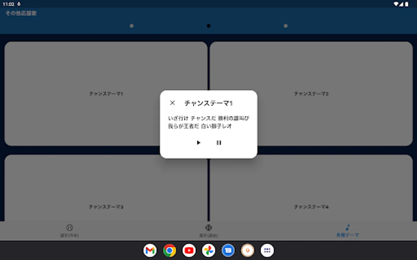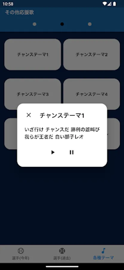 The perfect app for Lions fans! The Lions cheering song app has appeared as a tool to further boost the cheering during the game. From cheering songs for the latest season's players, to songs by legendary players, to enthusiastic Chance themes, it's all in this app.