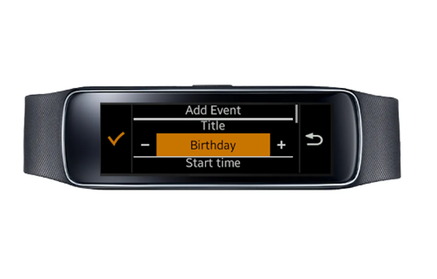 This calendar is synchronized with Calendar on mobile device so you can see all the events in your Gear Fit. You can also edit event reminder and even quickly add an event just by your Gear Fit with some simple templates.