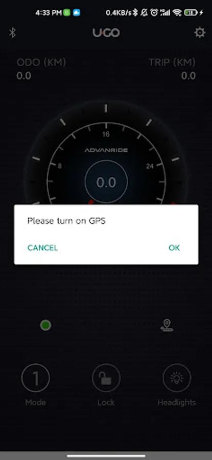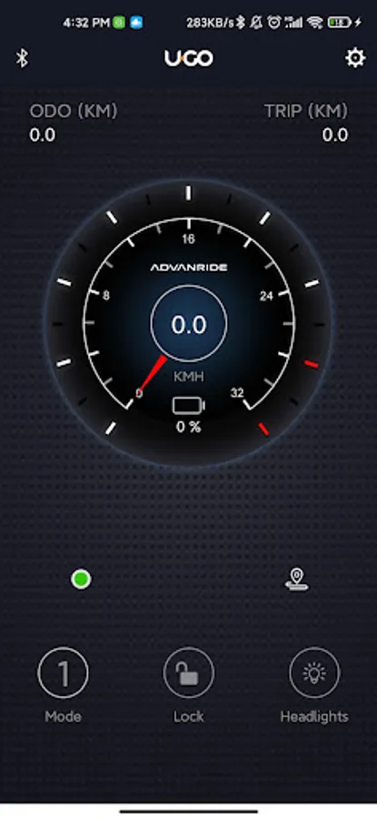 On the "Main" page,you can see vehicle speed, battery .On the page,you can also lock your vehicle,select vehicle mode and control the light.