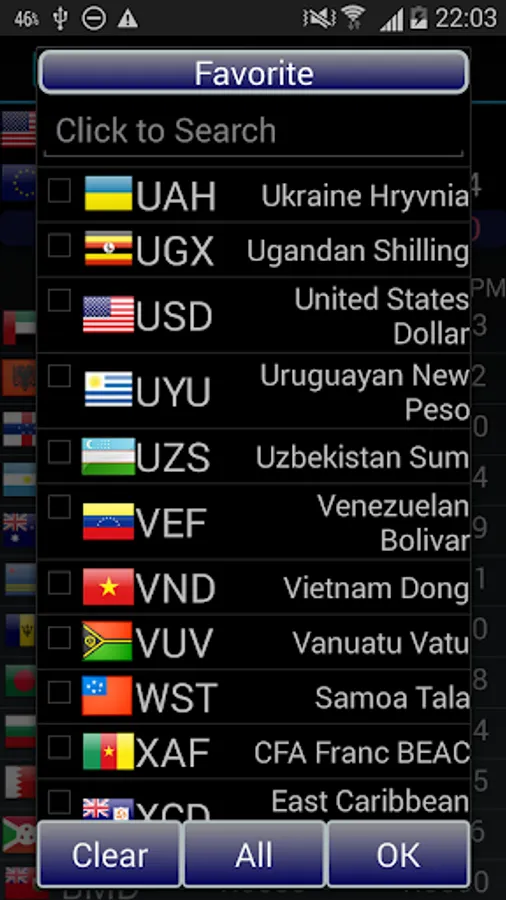 Only selected currencies are displayed in main listview.