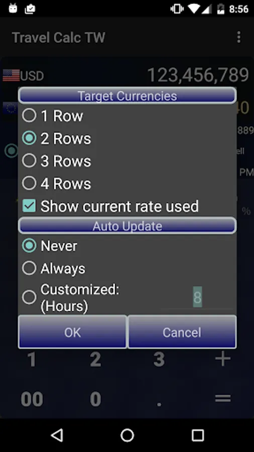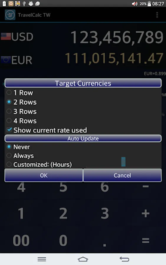 Max to 4 rows for displaying converted numbers with up-to-date exchange rates.