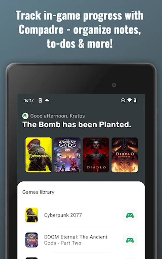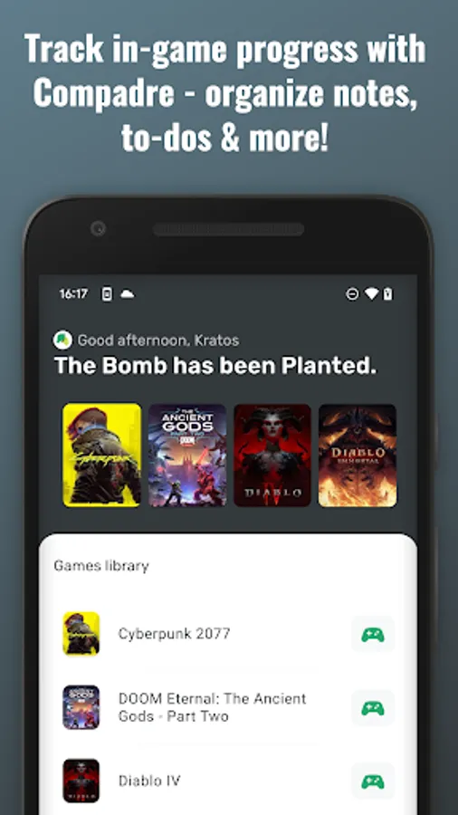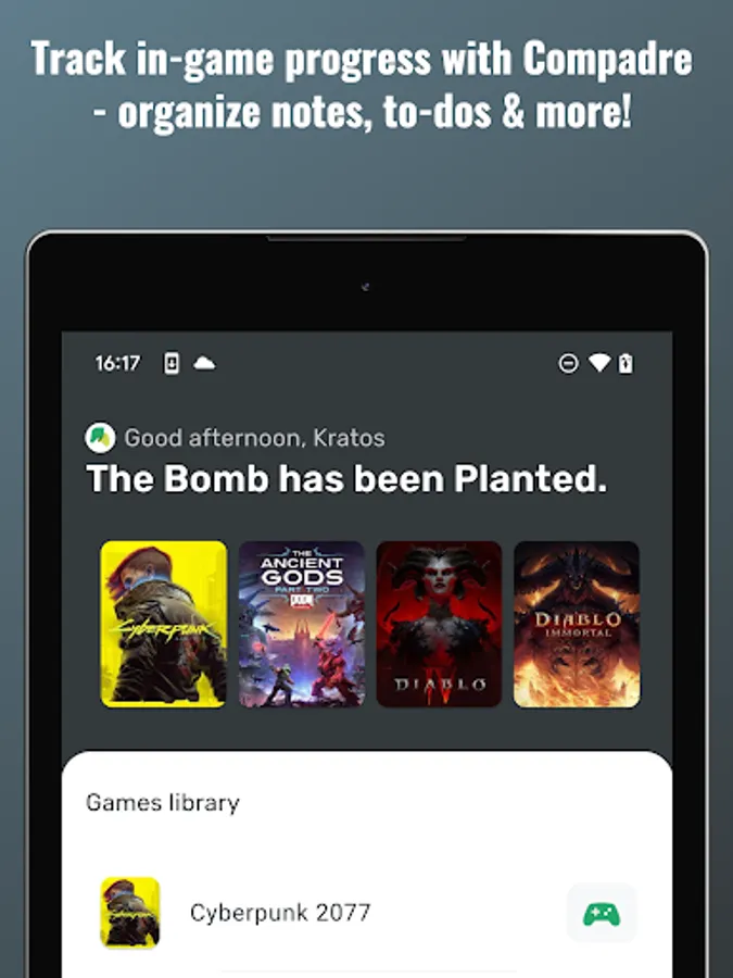 Gone are the days of scribbled notes and forgotten objectives. Compadre acts as a comprehensive game notebook, helping you chronicle every adventure. Our seamless game organizer feature categorizes your entries game-wise, making sure you always have quick access to your past exploits.