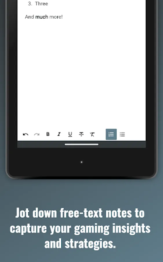 For gamers who love to strategize, our playthrough notes section is perfect. It lets you note down key strategies, pathways, and tactics for every game you dive into. Whether you're embarking on an epic quest or tracking daily challenges, our game quest log and gamer tasks are designed to keep you ahead of the curve.