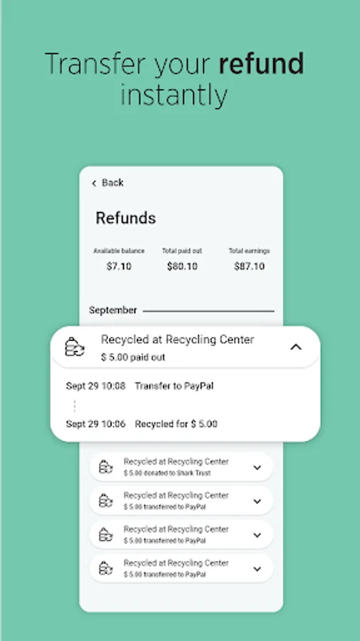 Transfer your refunds automatically to PayPal or similar digital payout methods* or convert it into a digital receipt for a truly paperless recycling experience.