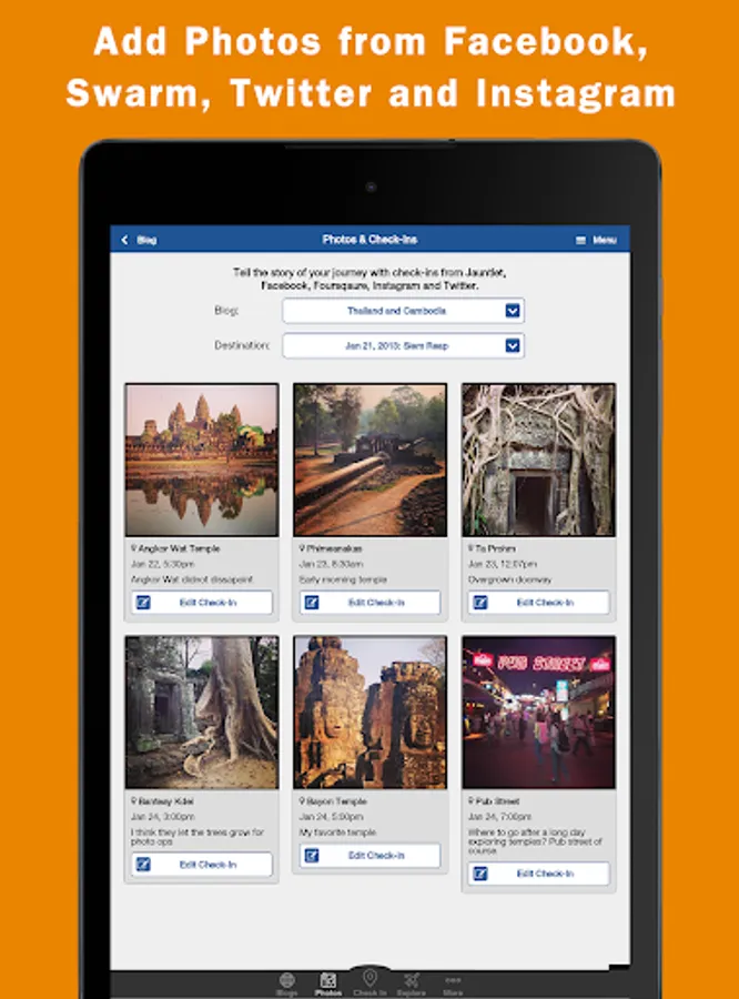 Update your travel blog on your phone or tablet while traveling and use the Jauntlet.com website at home to do your blogging.