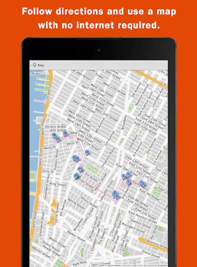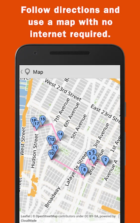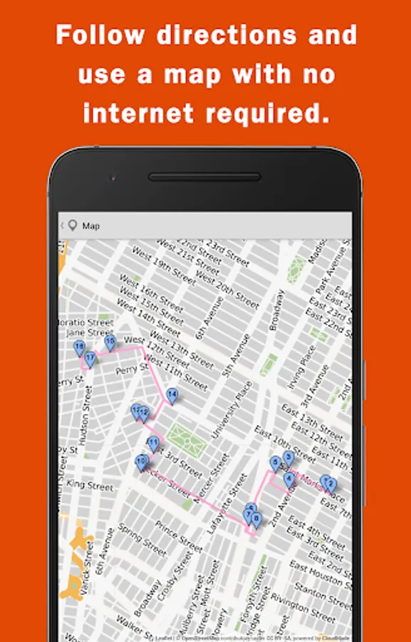 Follow walking directions and see everything on an offline map with no internet connection required for this tour by foot..