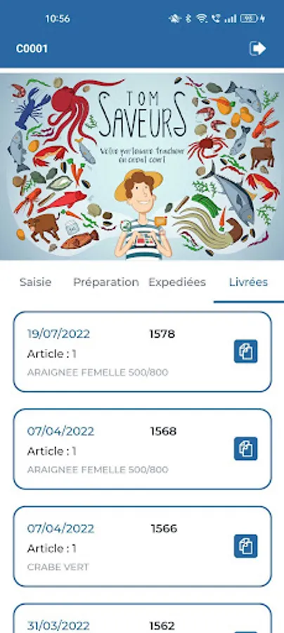 To use this application, you must have an access code given by the company Tom Saveurs and be a customer of this company.