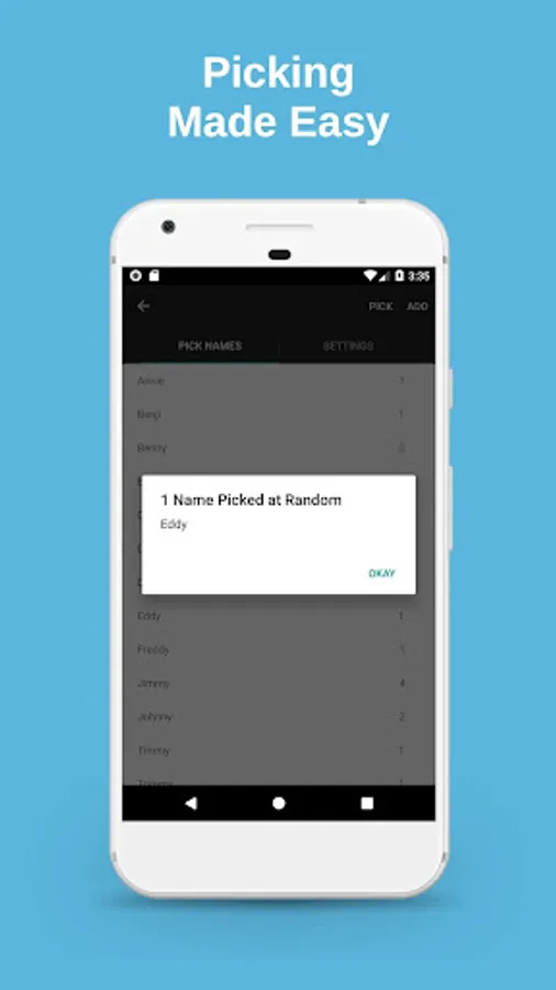 Pickster is a simple little app to help you pick names randomly from a collection - just like drawing names out of a hat, but with less paper... and hats.