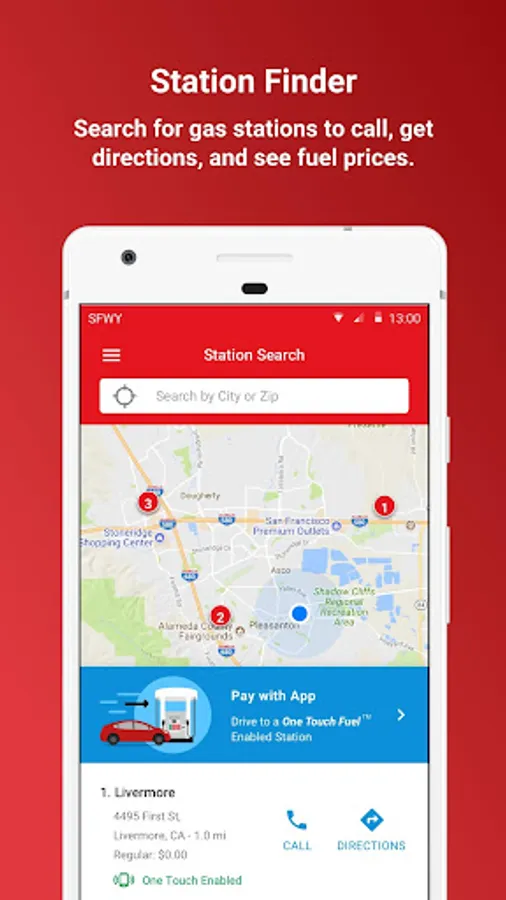 Search for a nearby station or one along your route. You can view gas prices, get directions, and call the station, all from the app!
