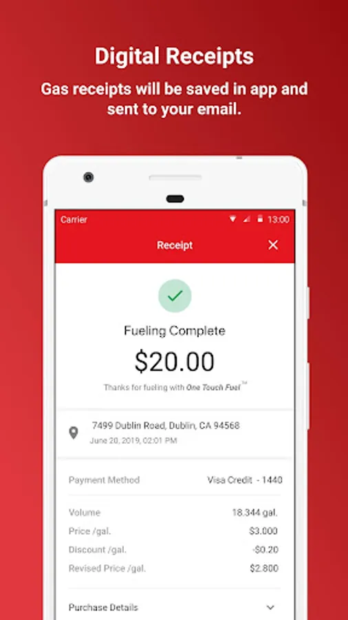 Redeem gas rewards instantly through the app. Track progress to your next reward so that you're always up to date on savings.