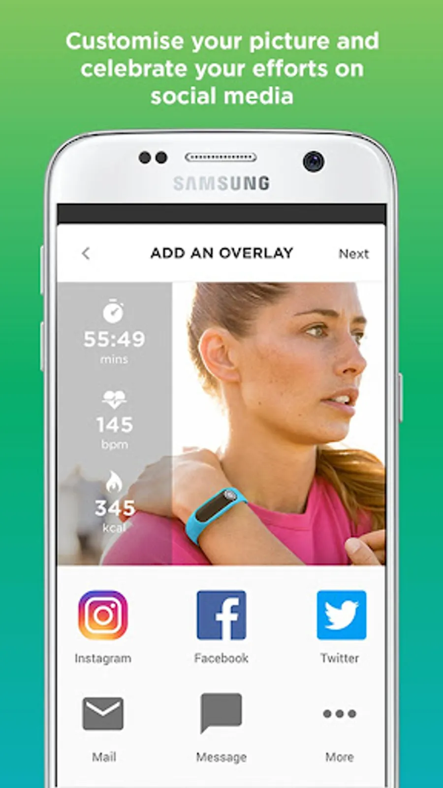 - Share your fitness achievements on your favorite Social Media and get motivation from your friends