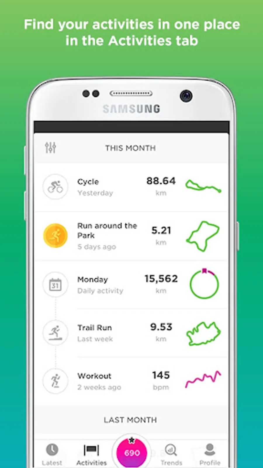 - Set your activity tracking goals and see your progress trends over time