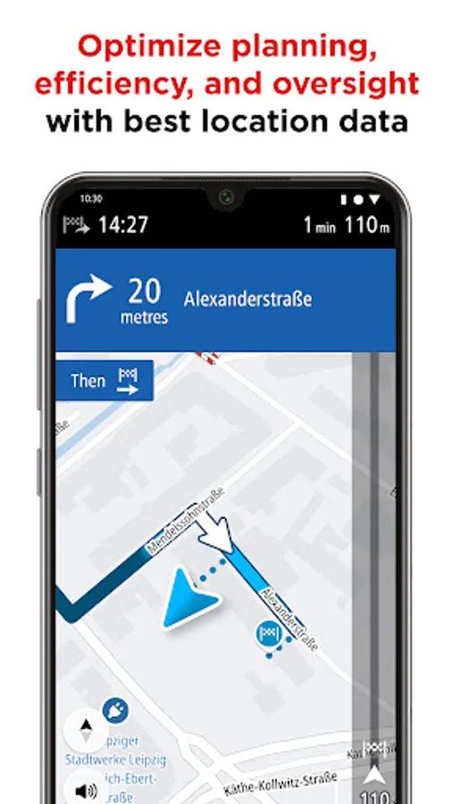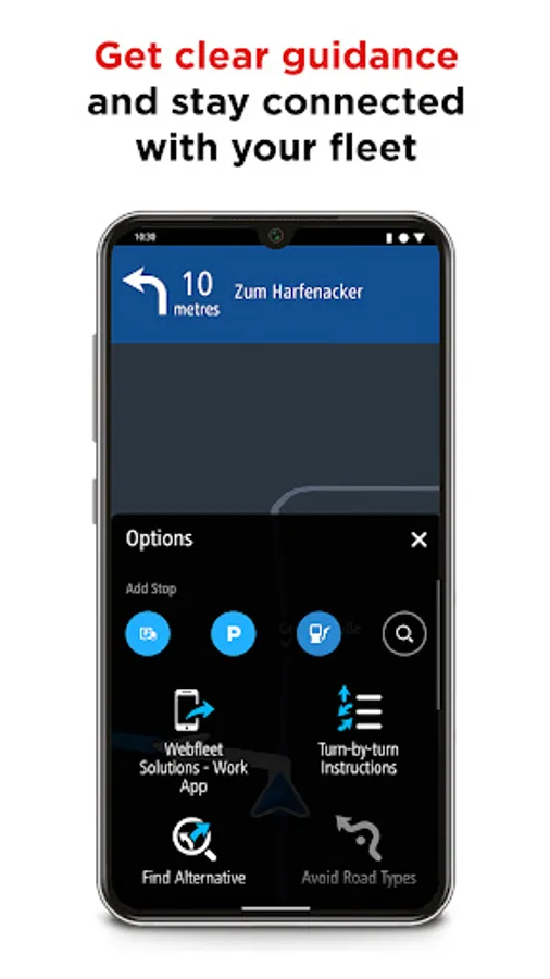 - Unlimited navigation via the license from partner apps like WEBFLEET Work App