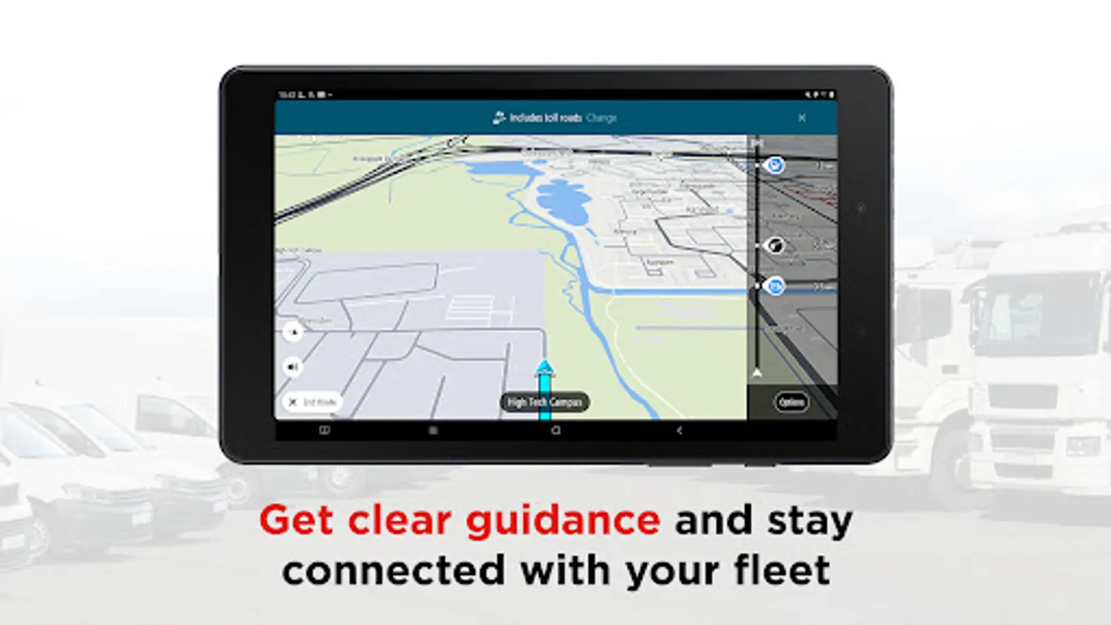 TomTom GO Fleet is specially designed for professional fleet managers and drivers. Licensed fleet management operators easily optimize planning, efficiency and oversight with GO Fleet’s powerful location data. Drivers stay on schedule with custom routing based on the vehicle’s dimensions to avoid unexpected surprises or delays, along with restriction alerts, ADR tunnel codes, trusted TomTom Traffic and clear, reliable guidance both online and offline.