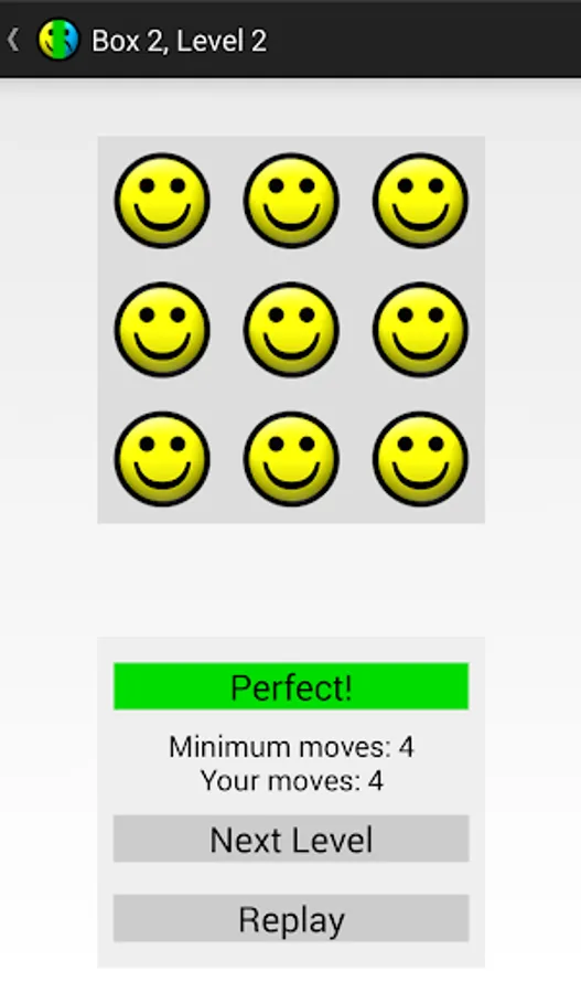 FlipIt! is a fun and challenging puzzle game. Your goal is to flip all the smileys over to their happy side using the controls at the bottom of the screen. Although easy at first, the levels become very difficult very quickly.