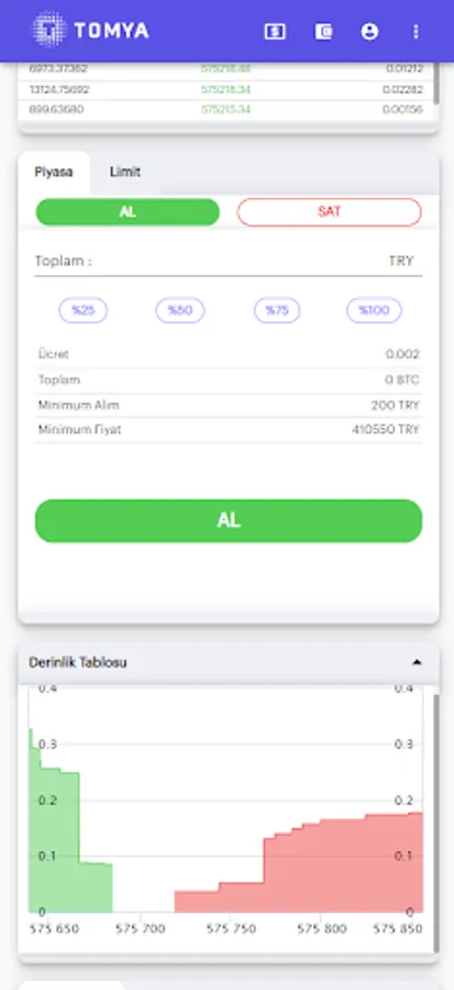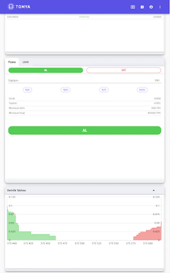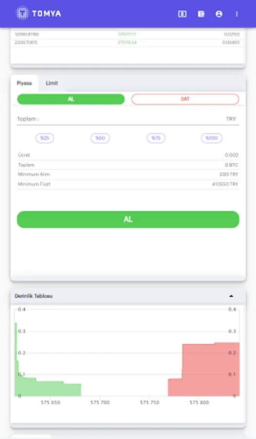 With TOMYA's practical interface and advanced mobile features, it is very easy to follow your transactions from anywhere! You can easily perform your transactions anytime, anywhere. You can perform your limit, stop buy and sell orders.
