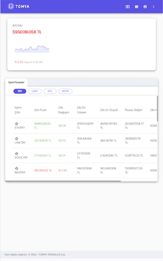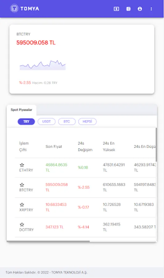 TOMYA, which started its service life in January 2020, aims to offer a reliable platform to all users with its fast and comprehensive infrastructure. For your security, all your transactions are protected by numerous online and offline systems. Thanks to two-step verification, all your transactions are carried out under your control.