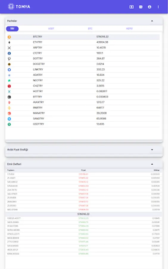 TOMYA, acting with an innovative, honest and professional perspective, has a vision of serving users in digital currency exchanges in a safe and transparent manner. You can do all the operations you can do on Tomya website anytime, anywhere with your tablet or smart phone.