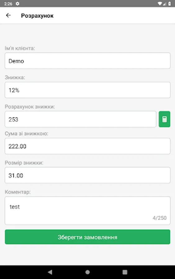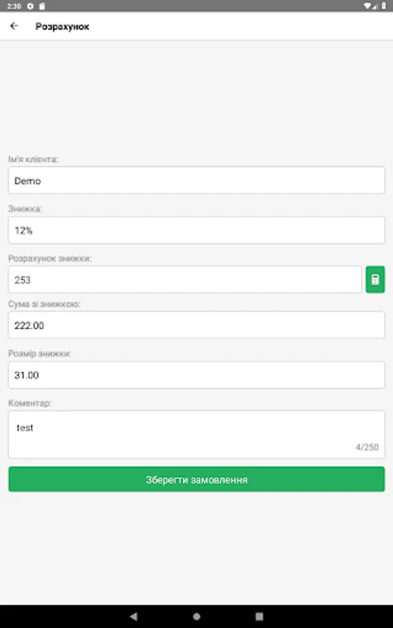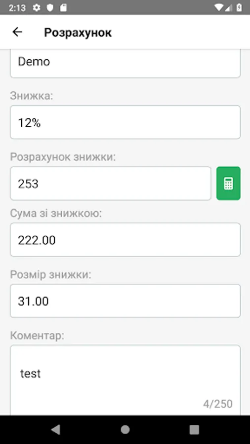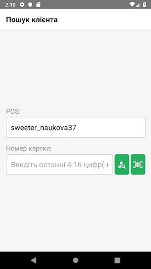 With the IT Cashier application, the operator can quickly make an estimate, and the IT Loyalty user instantly obtain a transaction in his gadget. The attachment shows the name of the institution, a field for verifying the user's card number, as well as terms of cooperation (discount, gift, bonus).