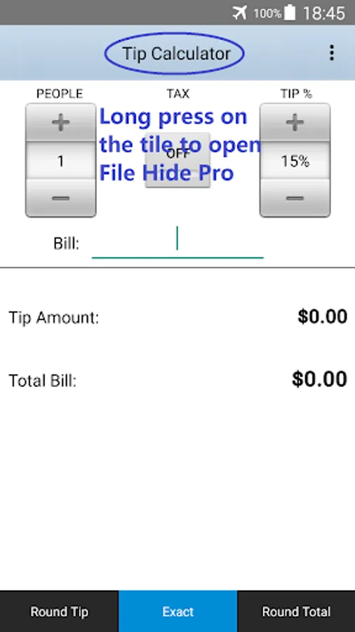 Long-press on the title "Tip Calculator" for more than one second.