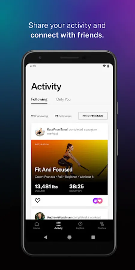 - • Get stronger, together: Connect with friends and stay motivated to get stronger while cheering on other members in the Tonal community.