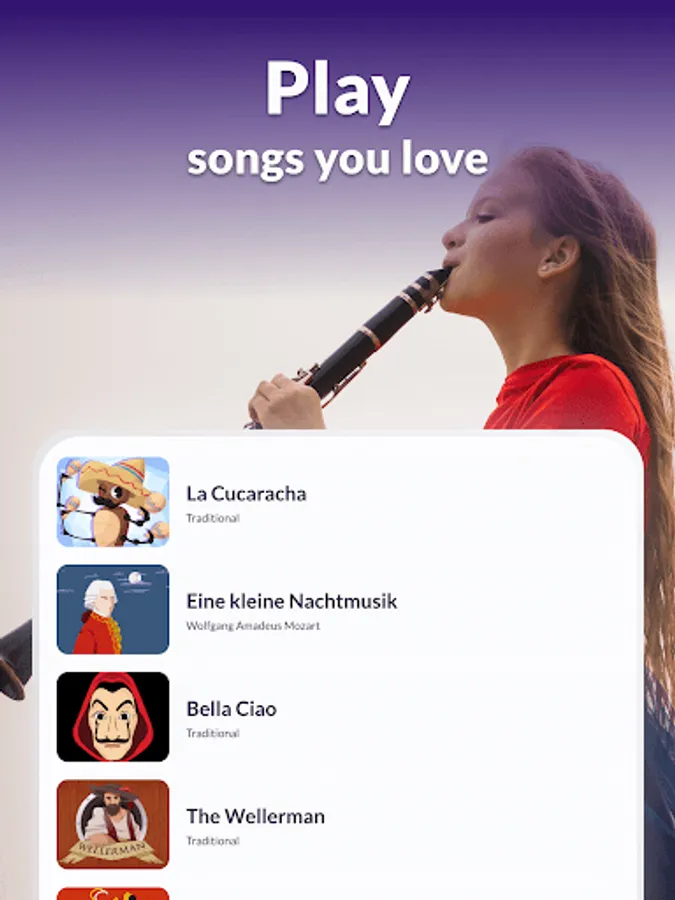 Discover songs from all music genres and play clarinet songs for every skill level. Whether you’re a fan of classical music or you prefer jazz songs instead: With tonestro’s large sheet music library you’ll find just the songs you need for playing your clarinet.