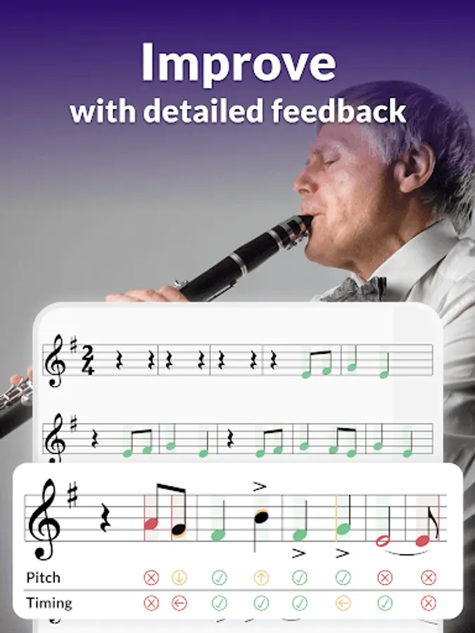 Learn to play the clarinet and improve on rhythm and pitch. tonestro listens to you while you play the clarinet and gives you immediate live-feedback on rhythm and pitch. A tuner lets you tune your clarinet easily.