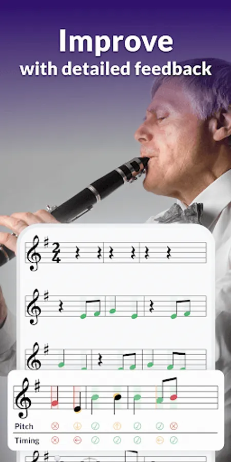 Weekly challenges with hand-picked songs give you the extra motivation to improve your skills when you compare yourself with clarinet players from around the world.