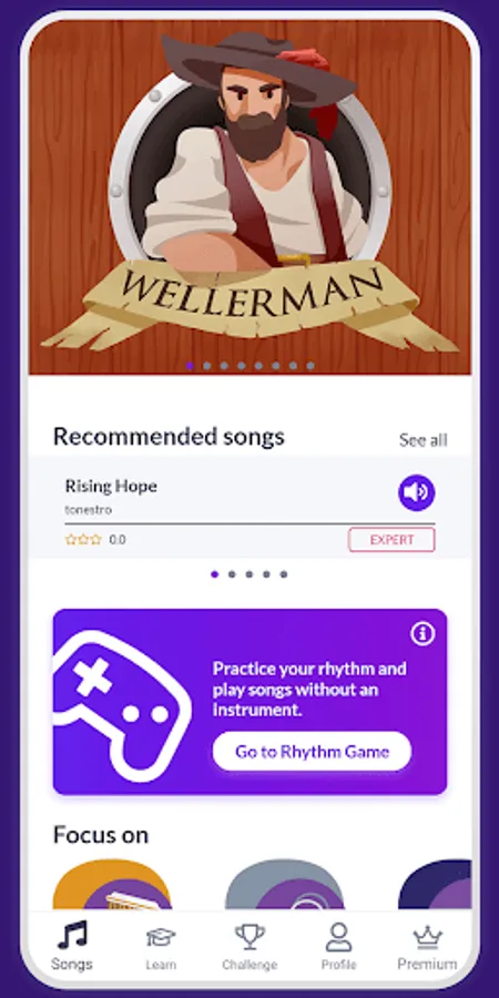 And you don’t have to play alone: With play alongs you’re playing with a whole band in the background. Always on your side is the tonestro tuner, which is an easy-to-use tuner that will make sure that you’re in tune. And there’s always the metronome that will guide you through the songs.