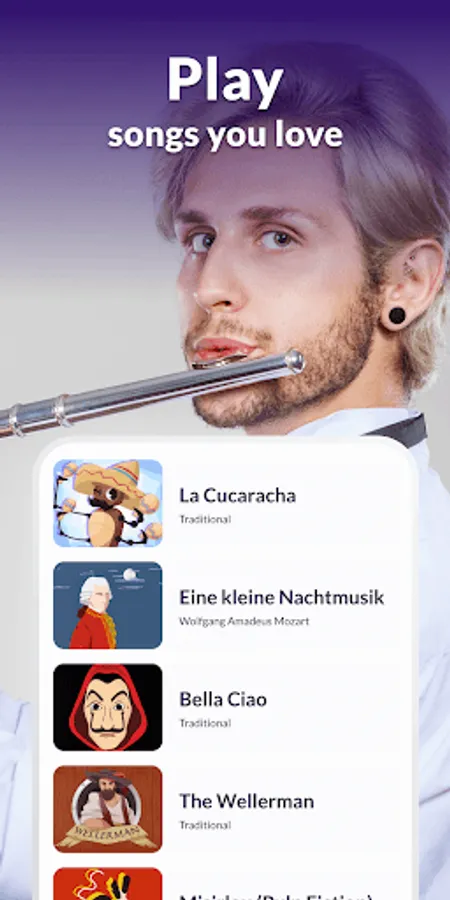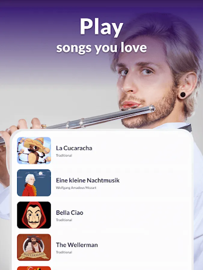 Weekly challenges with hand-picked songs give you the extra motivation to improve your skills when you compare yourself with flute players from around the world.