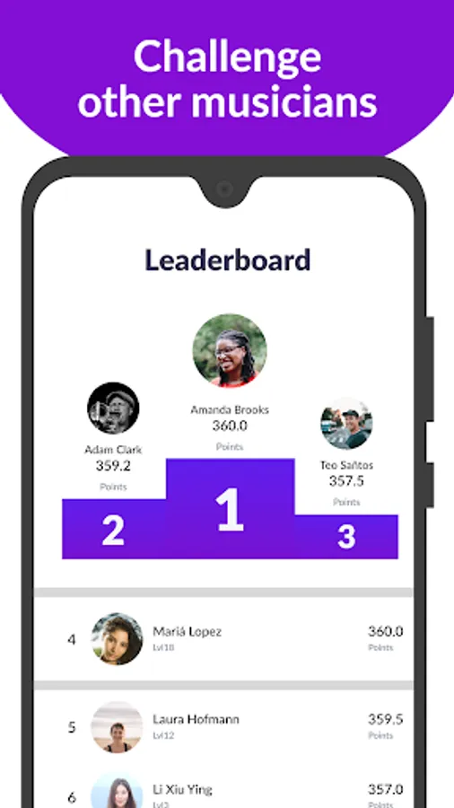 Weekly challenges with hand-picked songs give you the extra motivation to improve your skills when you compare yourself with recorder players from around the world.