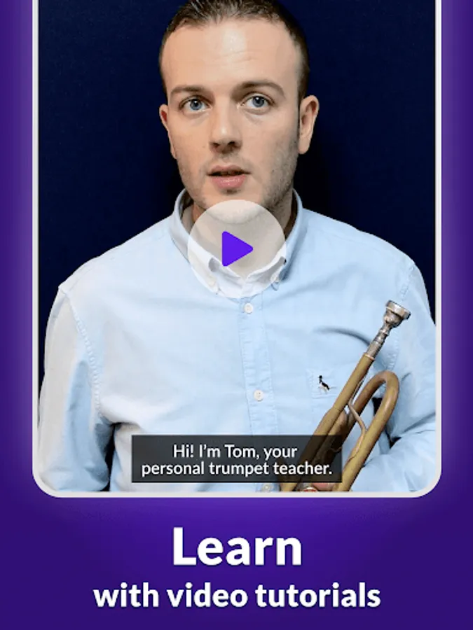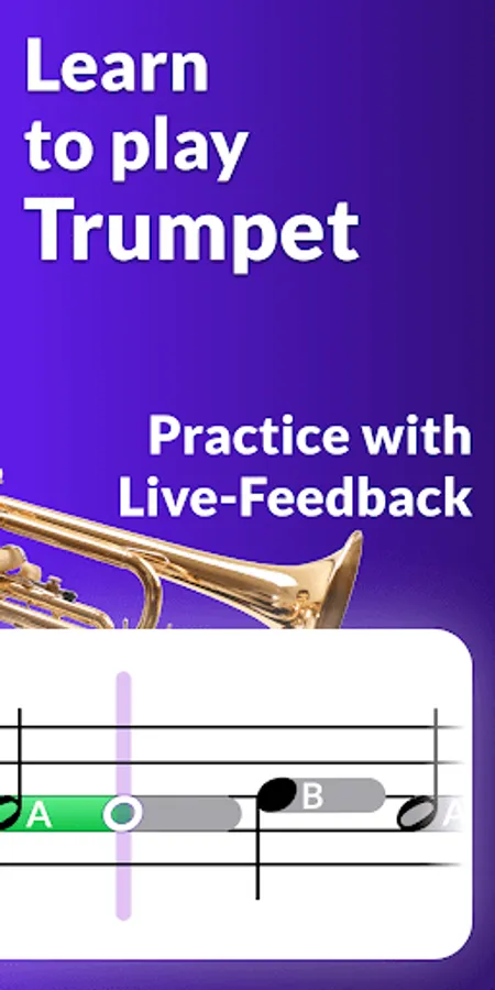 Learn how to play the trumpet or improve your skills with lessons, fingering charts and exercises. Step-by-step lessons will guide you through your first notes on the trumpet. Detailed explanations and fingering charts tell you how to play a certain note. A tuner helps you find the correct pitch. Test your knowledge in exams and see how fast you progress. Use your newly learned skills and play your first songs on your trumpet.