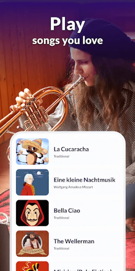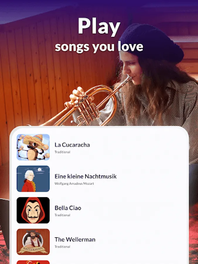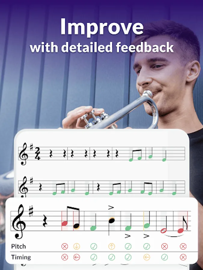 Weekly challenges with hand-picked songs give you the extra motivation to improve your skills when you compare yourself with trumpet players from around the world.