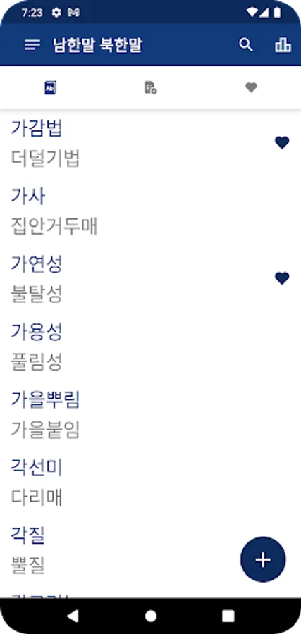 3. Favorites: You can only view words added to favorites in the South Korean and North Korean dictionary.
