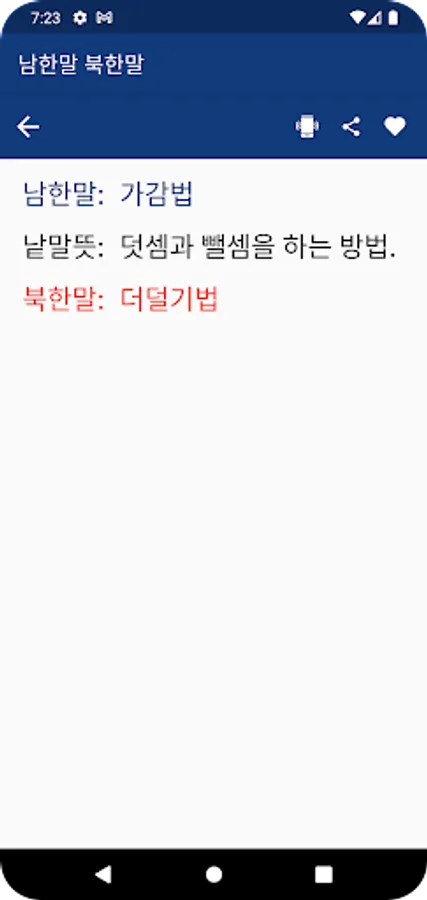 This is an app that allows you to compare and check South Korean and North Korean words that have the same meaning.