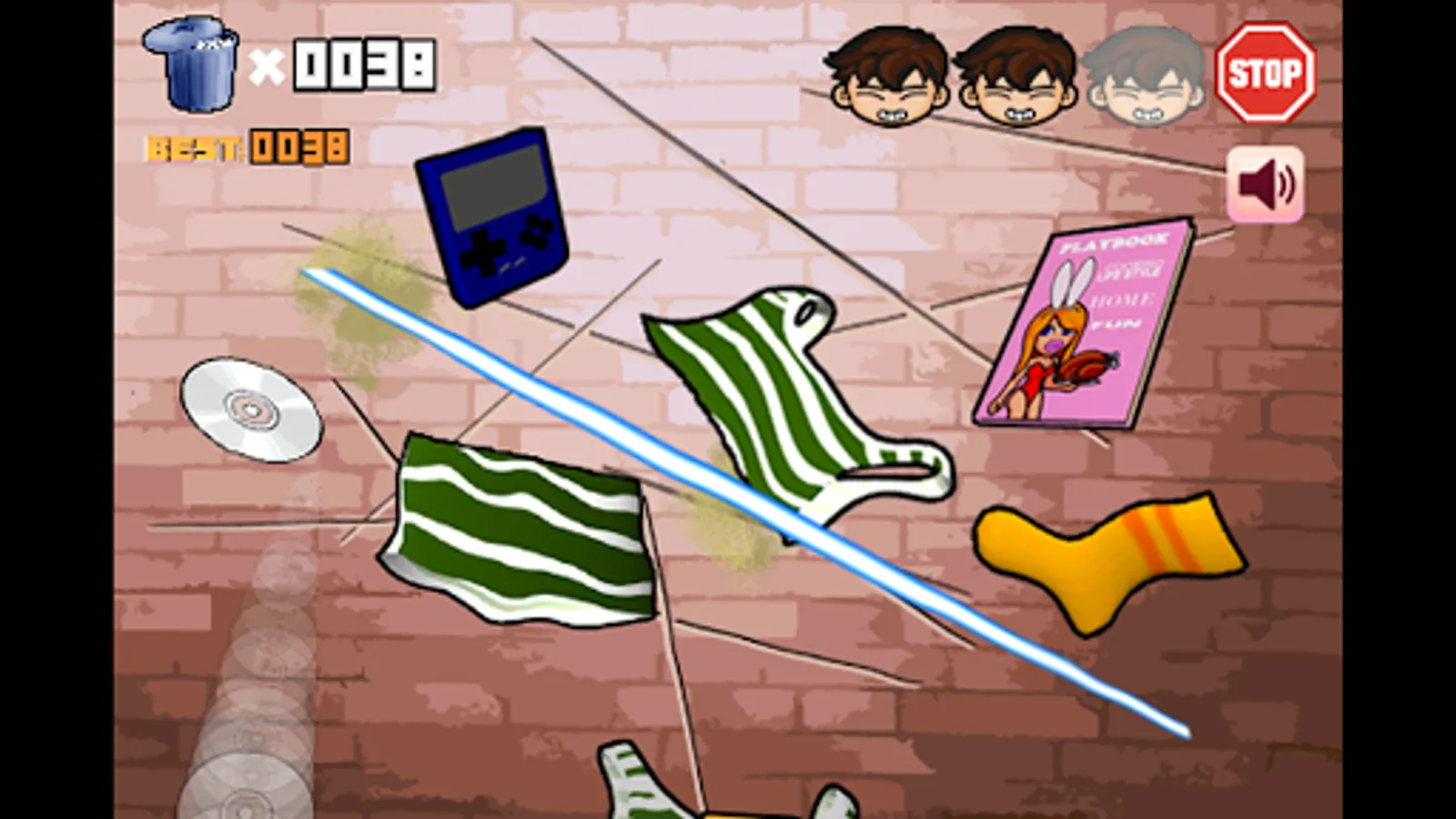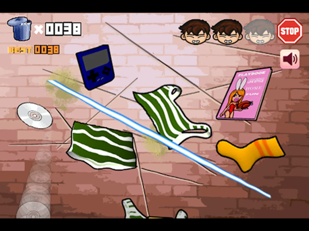 See how Angry Mama cleans TK's smelly socks, mess clothes and computer accessories. Help Angry Mama! Do not let the mess fall to the ground! Swipe to cut the flying clutter! But avoid the pencil of inspiration, otherwise the pencil will explode and end The game.