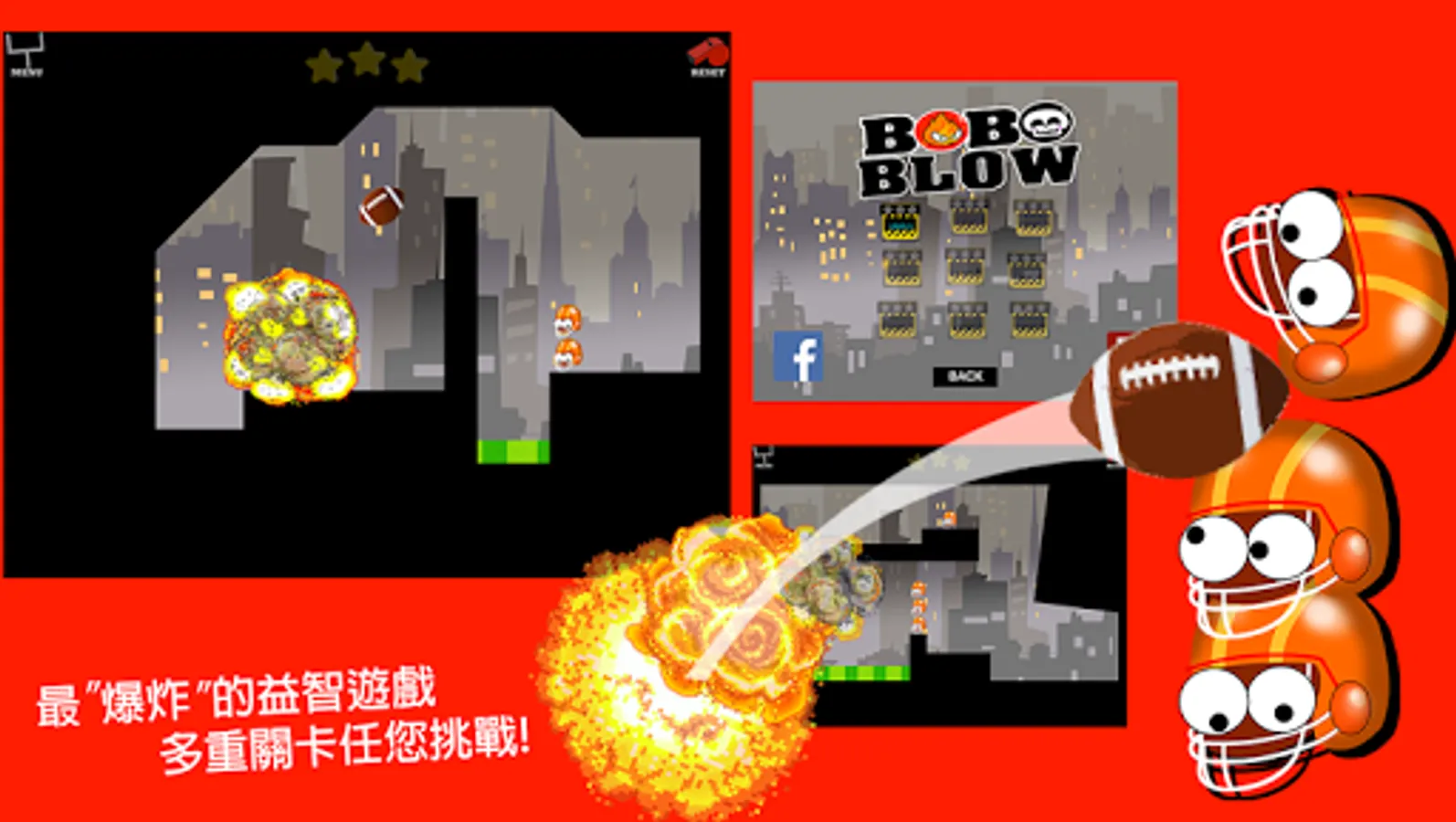 Puzzle game, with a bomb to blow up into a green area with football scores! Tasks can enter the next level.