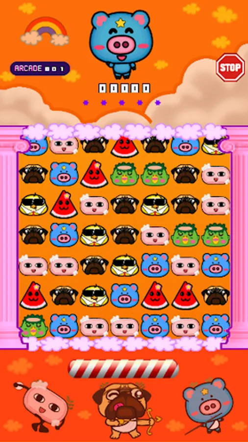 Match three or more character cubes to dismiss them