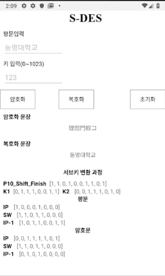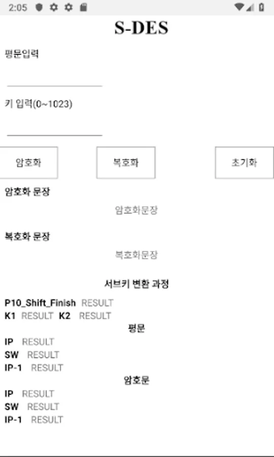In the subject of information security in the curriculum of computer engineering, I learned S-DES in class. I made it a little easier to understand how the application is implemented and how encryption is proceeded.