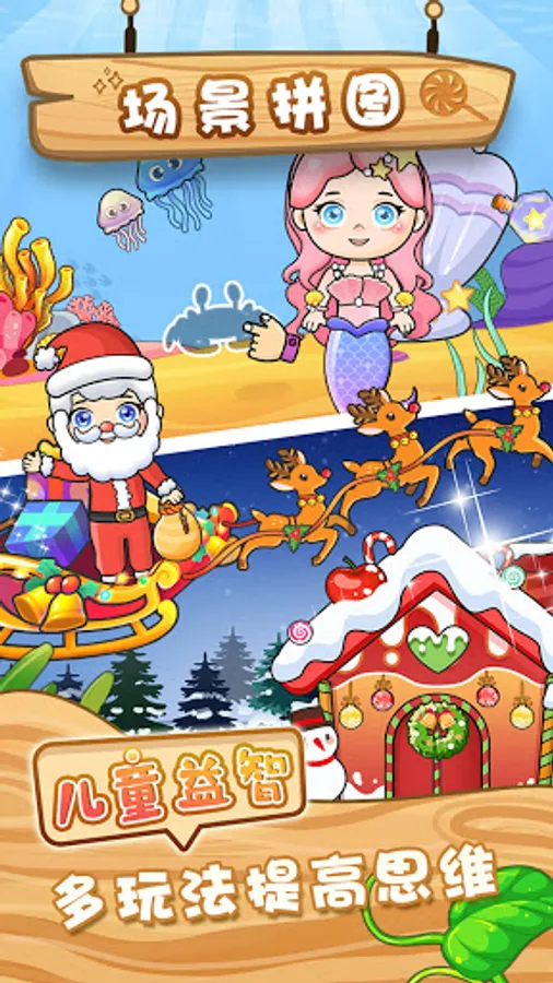 Jigsaw Puzzle Game for Toddlers is a children's learning puzzle game specially designed for children from 1 to 6 years old. Dressing up through different scenes and combining puzzle games can effectively promote the development of children's cognitive and thinking abilities. In the game, various familiar and favorite scenes of children are designed, such as Santa Claus, Snow White, hero, dwarf, and mermaid, and through interactive games such as matching, finding different colors and shapes, etc., children’s creativity and problem-solving skills are exercised. It is a very interesting and educational early education product.