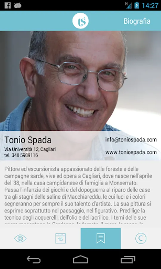 On the occasion of the exhibition "Sentidusu de Sardigna" which will take place in Cagliari at the Caffè dell'Arte in Via Caprera (from Monday to Friday from 7:00 to 19:30) on 11 October 2013, this application is intended to illustrate the catalog of works that will be presented by the author Tonio Sword.