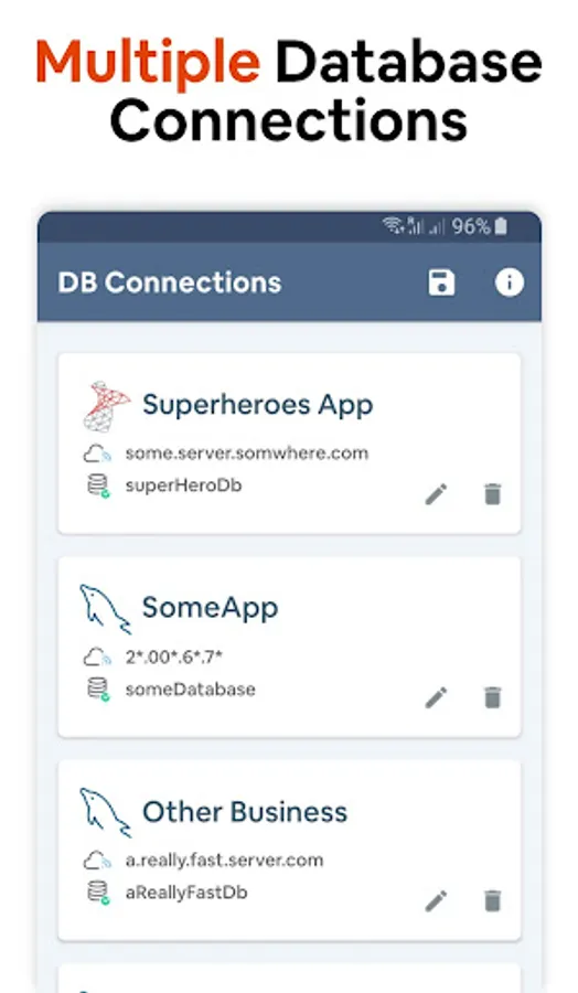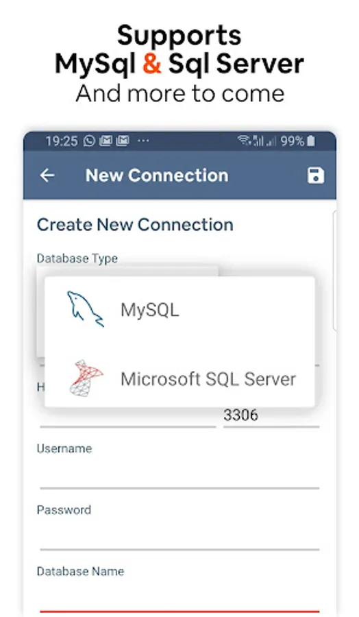DB Client allows you to connect to MySql and Microsoft Sql Server database straight from your smartphones or tablets. You can execute queries, navigate through databases, tables or views, export data and stay productive while you are away from your laptop or computer.