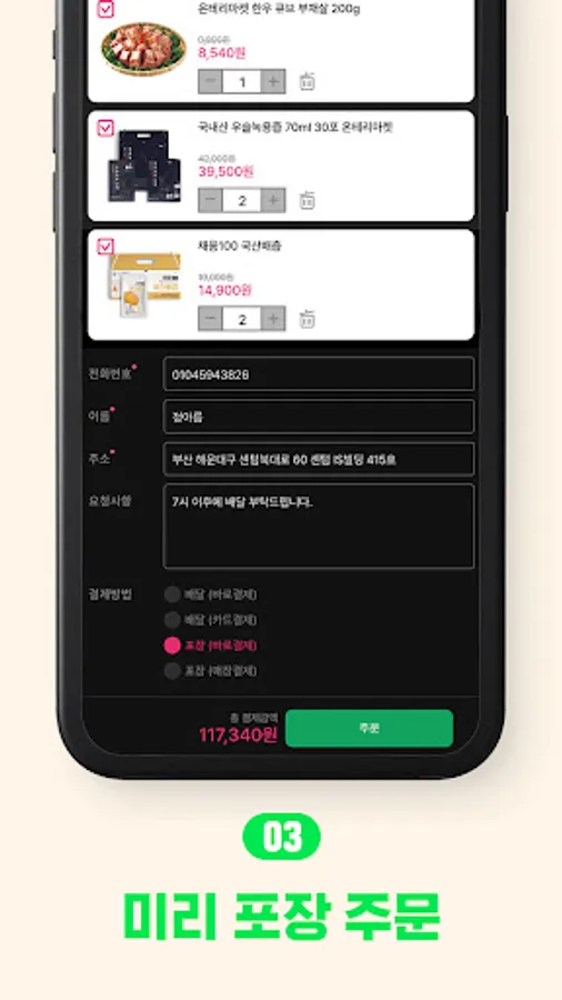 If you order in advance before arriving at the mart, you can start packing right away and pick it up at the time you want.