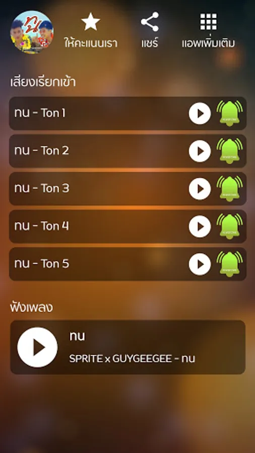 Launch the latest application Ringtones, call, set alarm clock tones, Set a notification sound with TON Thai presents by SPRIte & Guy that hot hit songs.