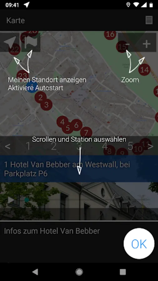 1. If you would like to hear the audio contributions of the app in simplified German, select the "audio tour in simple language" (about 45 minutes).