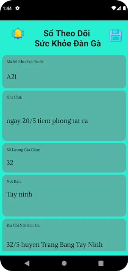 * Farm Management Logbook helps to save management costs, Check health information, diseases per flock quickly,
