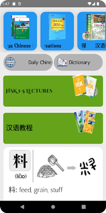 * Presenting 2000 Chinese Characters Flashcard explaining origin of each word by funny picture which help user memorize Chinese characters easily