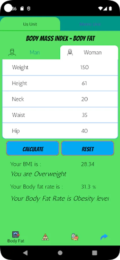 * Helping user check Body Fat rate, Basal Metabolic Rate