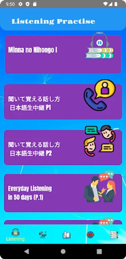 * Supply Listening part helping user train listening Japanese ability with more than 100 lessons from basic to high level