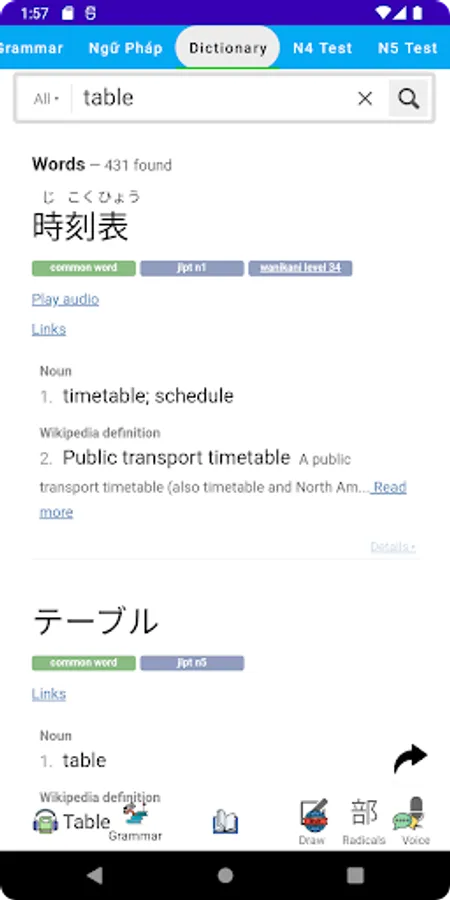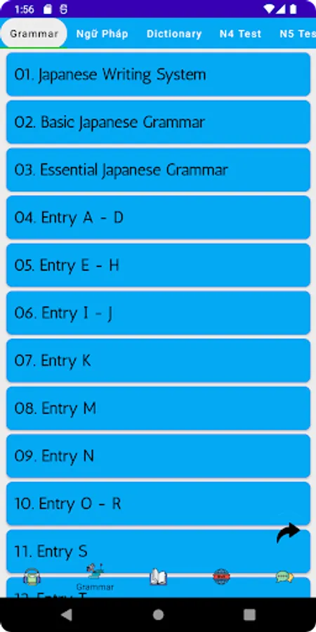 * Application provides Japanese learner a tool to study and review grammar easily. Many grammar points which is used popular in daily life and N5, N4, N3, N2, N1 JLPT examination.